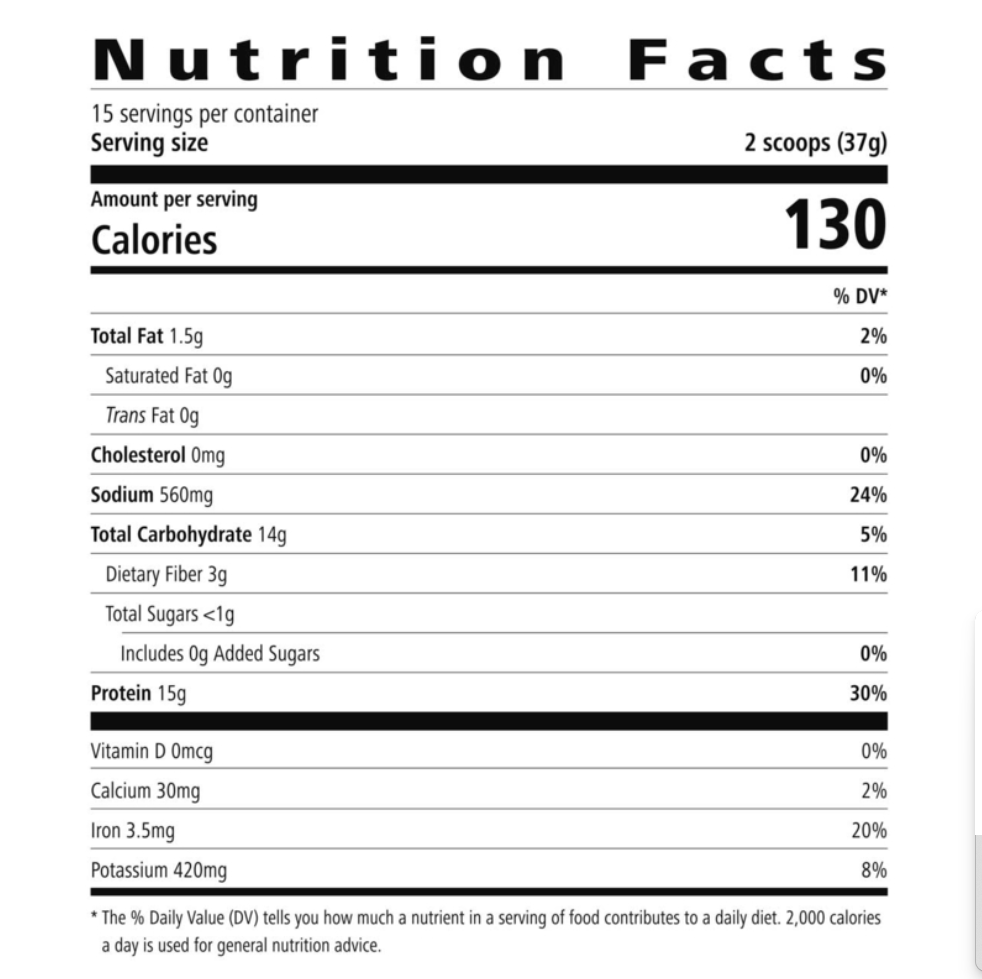 - 15 g of plant-based protein (soy and pea)